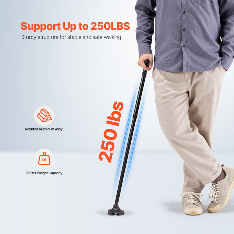 Reliable and ergonomic, this Folding Walking Stick provides stable support for men and women during daily walks or short trips. With a comfortable grip, 4-pronged pivoting base, and height-adjustable design, it helps relieve arm and hand strain while ensuring safe navigation across a variety of surfaces. Ideal for seniors and individuals with mobility needs.